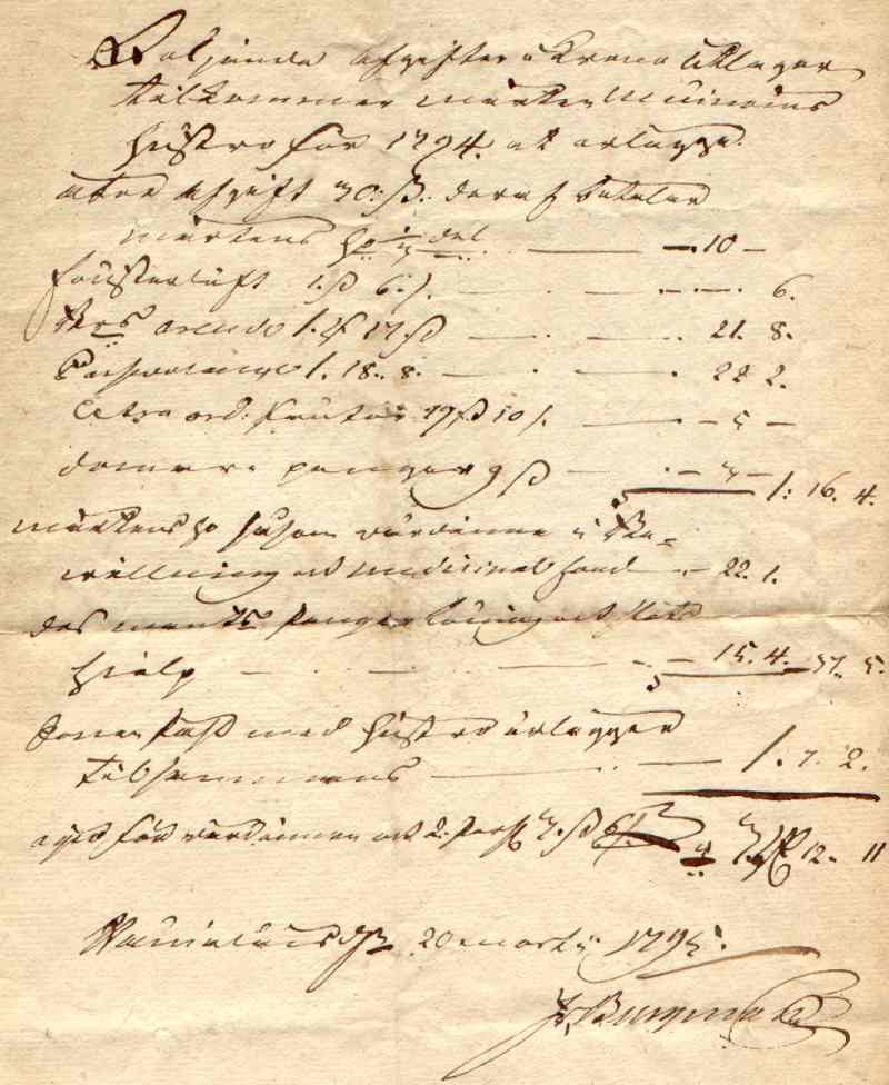 Seuraavassa paperissa on kuitattu Martti Muinosen vaimon maksamat verot vuodelta 1794.
